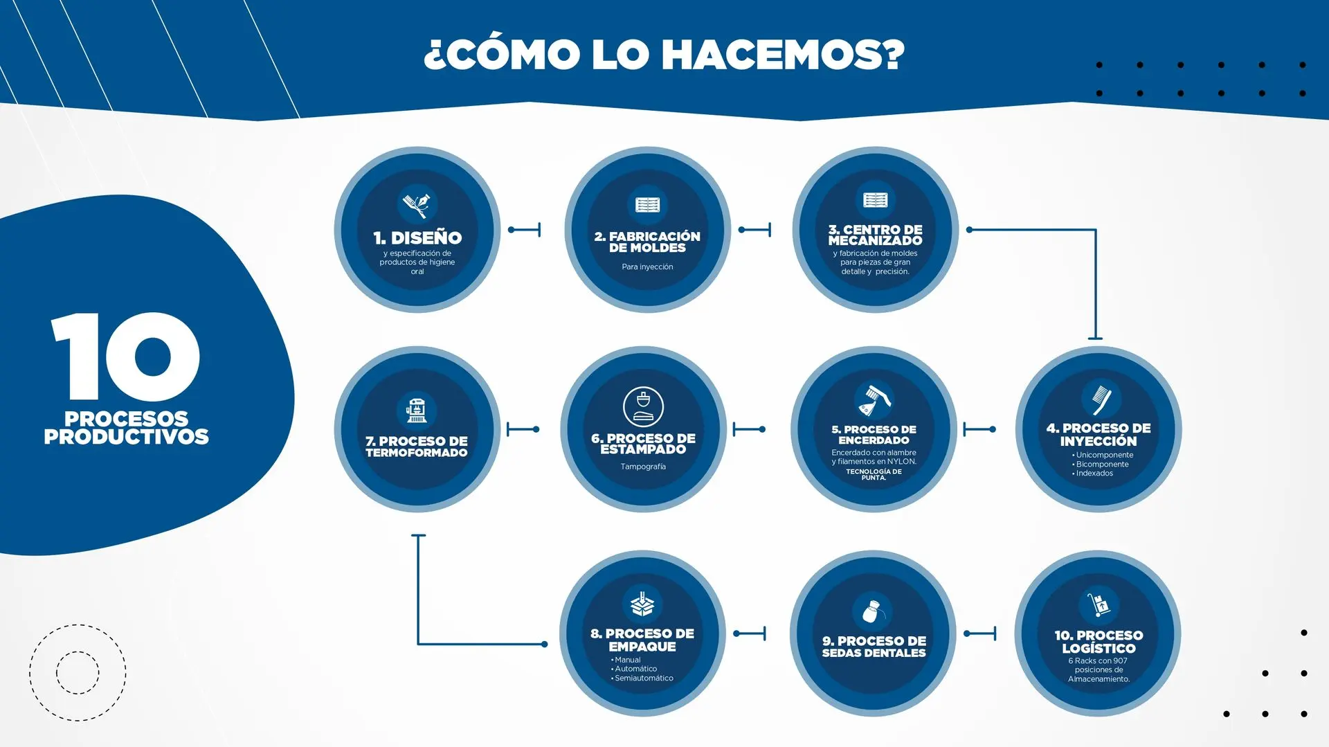 Somos una empresa que provee productos de higiene oral, que generan salud, bienestar y satisfacción a nuestros clientes en el mercado nacional e internacional a través de las marcas comerciales y las marcas propias.